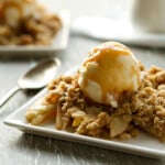 Normally at this time of year, spring is well underway. Temperatures are getting warmer, the tulips are starting to bloom and I come down with a serious case of spring dessert fever. But it snowed here this week and right now it’s a balmy 40 degrees. So you can understand my seasonal confusion and totally get the fact that I’m still rocking Ugg boots and craving warm, comforting desserts like Apple Pear Crisp.