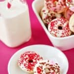I think cake donuts are a great idea, the fried ones are way too greasy. These are adorable with the Valentine’s Day sprinkle decoration.
