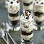 2. Spoon the filling into a pastry bag or large zip top bag. Snip enough of the end off the bag to allow you pipe the mixture into your desired serving glasses. I alternated layers of the cookies and cream cheese mixture with chopped cookies.