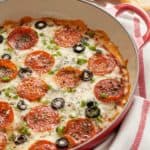 I love that it actually looks like a pizza in the baking dish! This is defs going on the Super Bowl list…